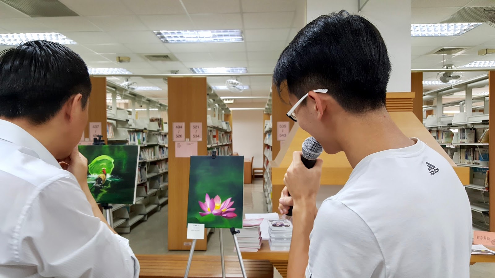 今天中午我和同學們化身為這位青年畫家的粉絲,由宇謙親自帶大家導覽作品。宇謙和許多我認識愛畫畫的孩子一樣,看起來好像有點靦腆,但內心戲很多。問他畫畫時心裡想些甚麼?他說的完整內容我記不得了,但感受得到那股歡喜的心情。